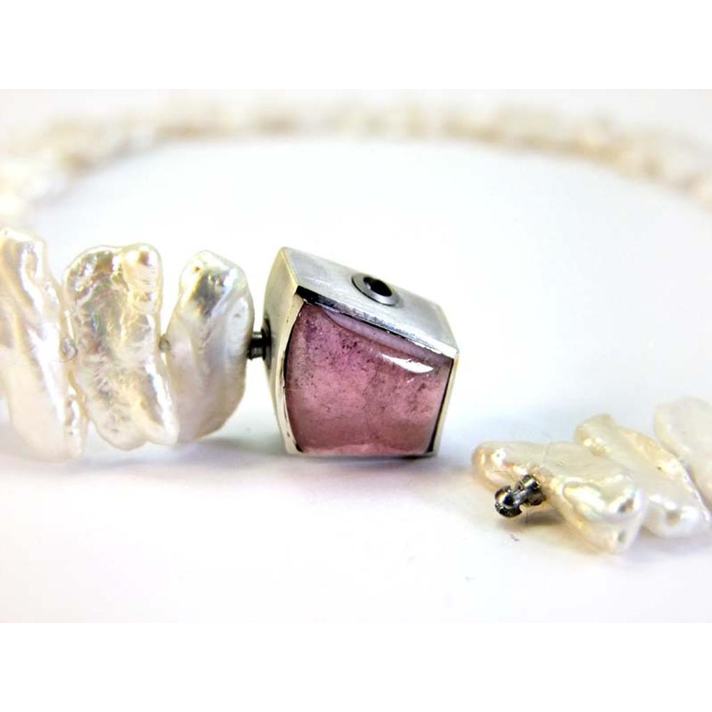 *Verwendete Materialien* 925/ Sterlingsilber, Süßwasserzuchtperlen, rosa Turmalin, Edelstahlwechselschließenmechanik