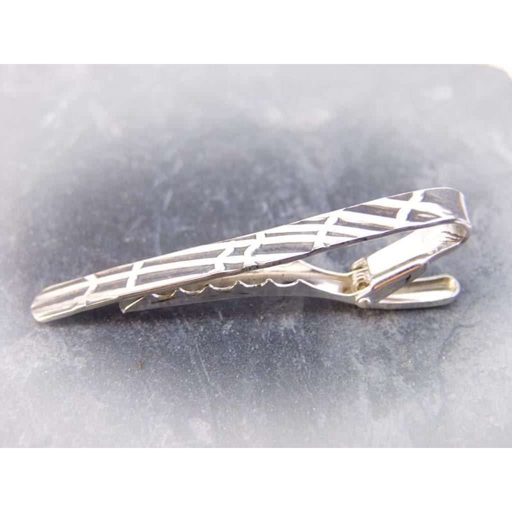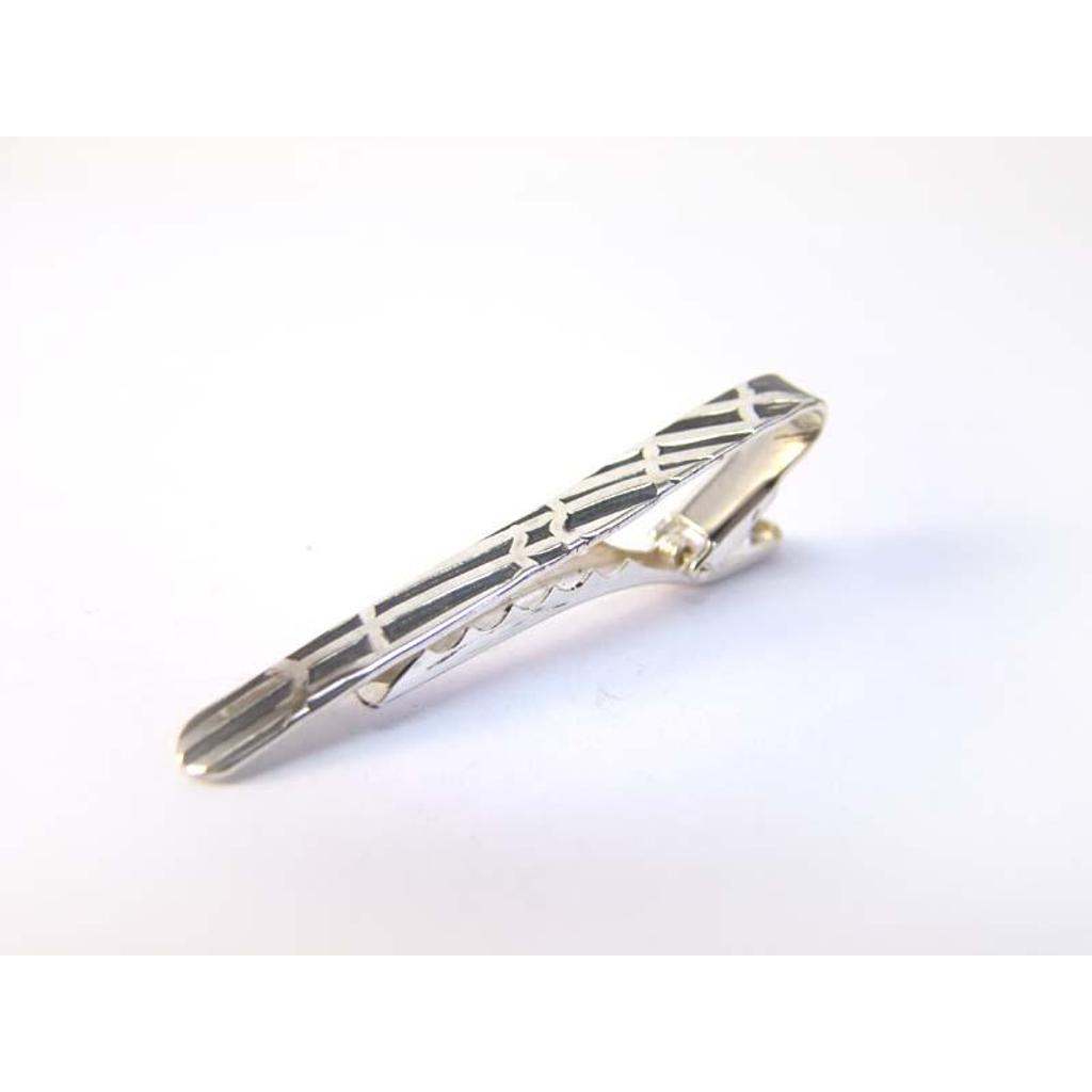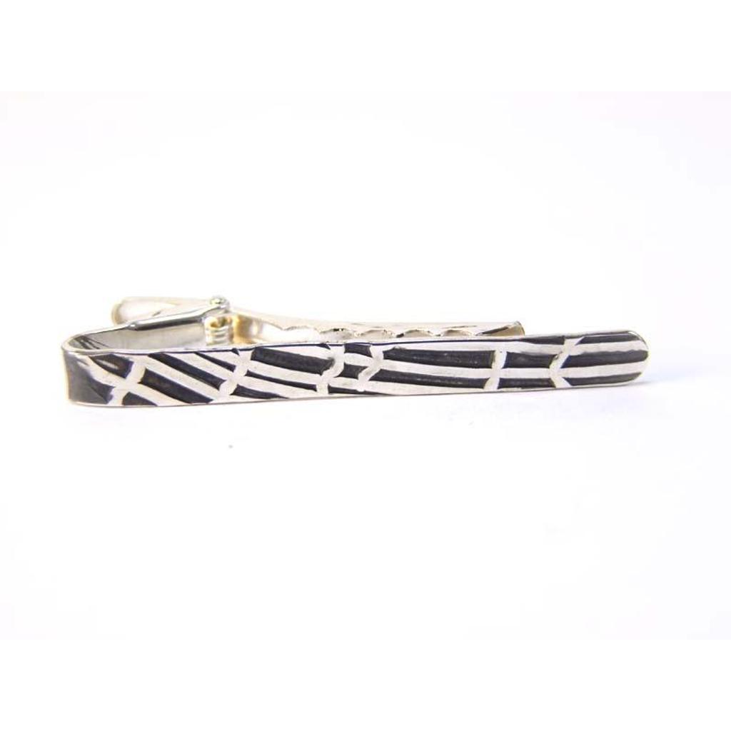 Krawattenklammer (sogenannte Krokodilklammer) mit Muster( immer ein wenig anders als auf dem Photo), das an trockene Erde erinnert. aus 925/Silber, Oberfläche geschwärzt/poliert Länge 55 mm Breite 5,5 mm Klammer mit Sicherungskettchen
