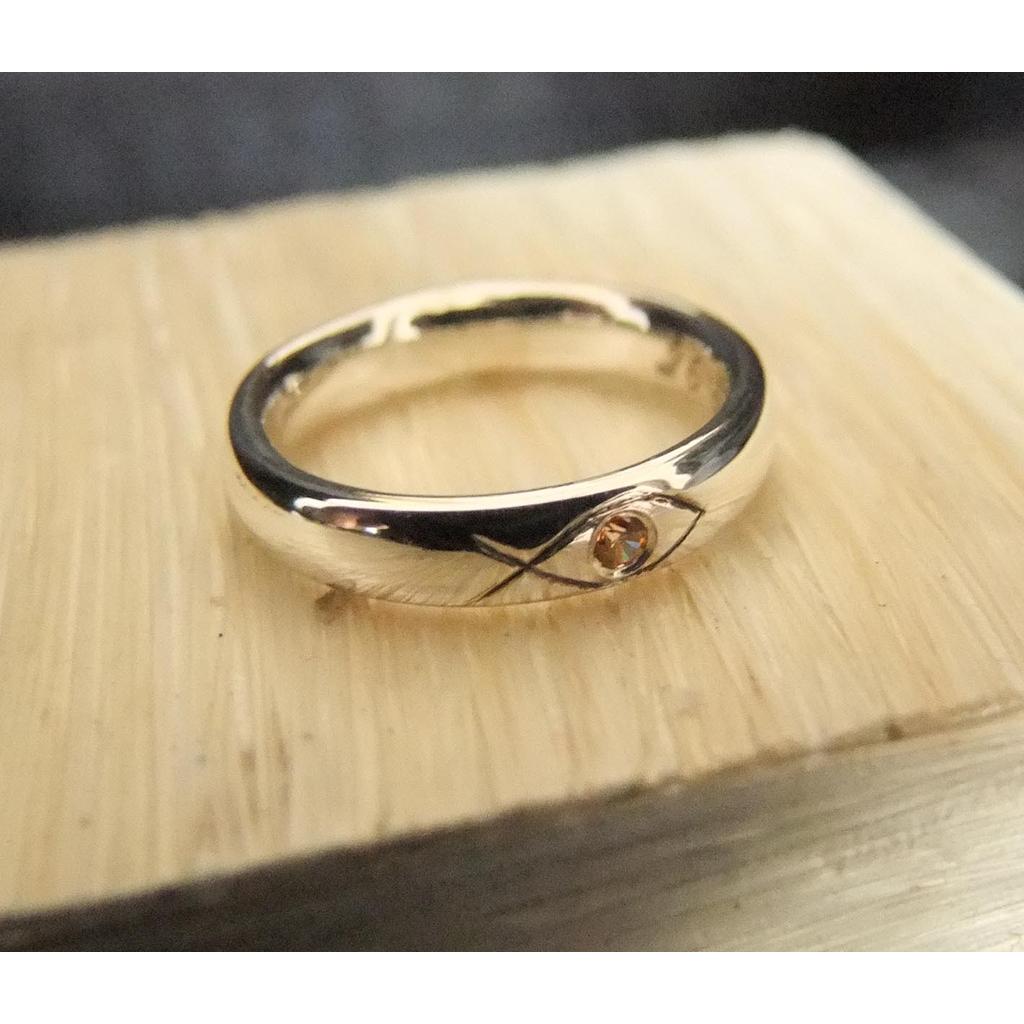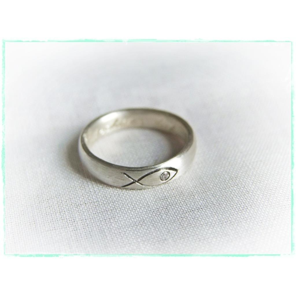 Ringschiene ist innen graviert mit dem Namen des Kindes und dem Taufdatum. Ring ist außen und innen bombiert(gewölbt)und deswegen sehr "fingerschmeichelnd" Fischgravur ist geschwärzt, damit sie besser hervortritt.